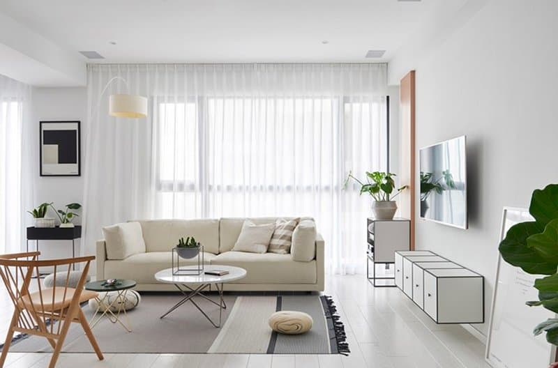Đây là mẫu thích hợp với các phòng khách nhà ống, căn hộ, thiết kế cửa sổ lớn để tận dụng tối đa năng lượng của ánh sáng mặt trời cũng như không khí tự nhiên trên cao.